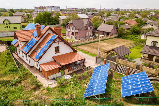 Solar panels for homes are devices that convert sunlight into electricity using photovoltaic (PV) technology. They are installed on rooftops or nearby open areas to generate power for household use. The electricity produced can support daily energy needs such as lighting, appliances, and electronic devices.